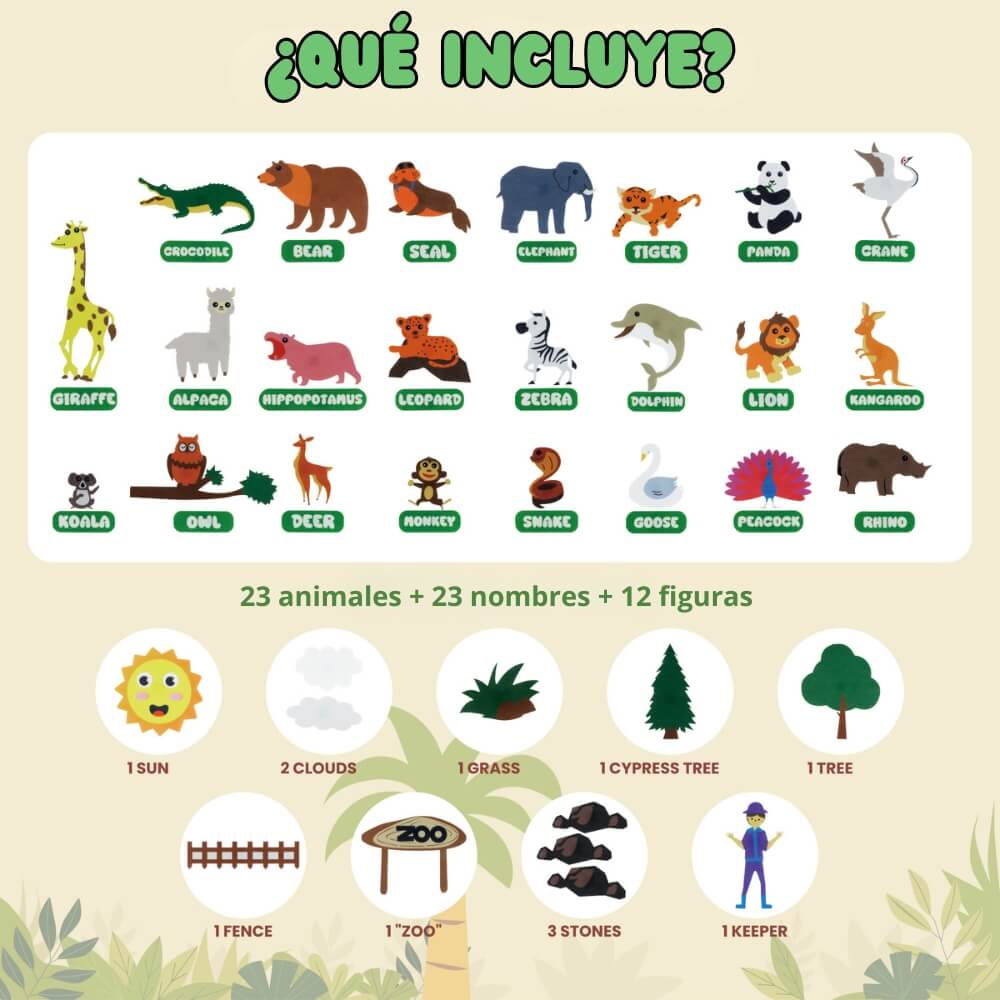🦁 Animales del Zoo — Explora la selva, el mar y el cielo con más de 50 figuras de fieltro.